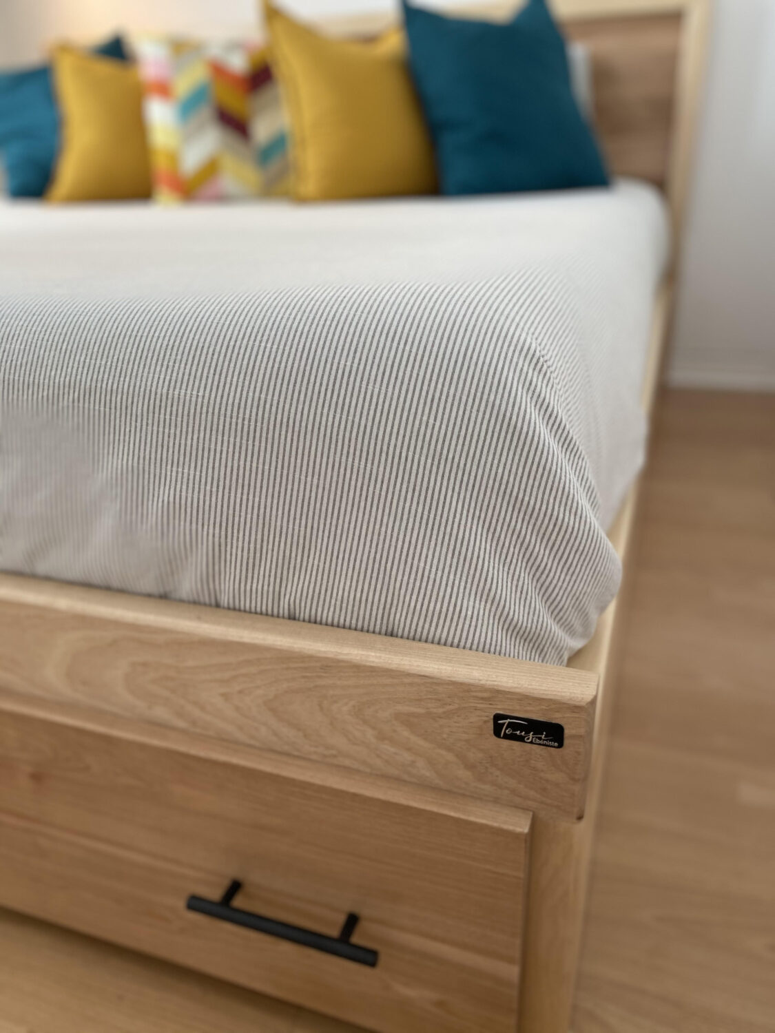 Il est aussi possible d'avoir le lit en Noyer ou Érable massif