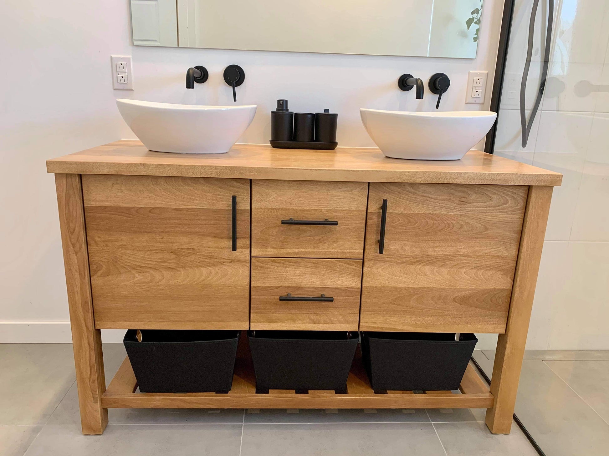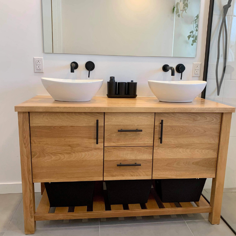 Dans les photos, vous trouverez les choix de poignées et de couleurs qui ne changent pas le prix. Noter que les options de couleurs sont basé sur une base de merisier massif.