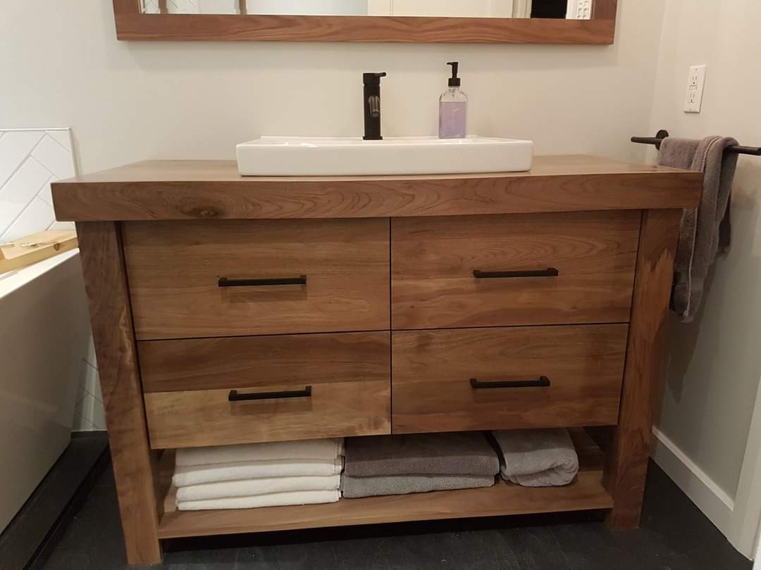 Dans les photos, vous trouverez les choix de poignées et de couleurs qui ne changent pas le prix. Noter que les options de couleurs sont basé sur une base de merisier massif.