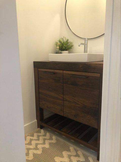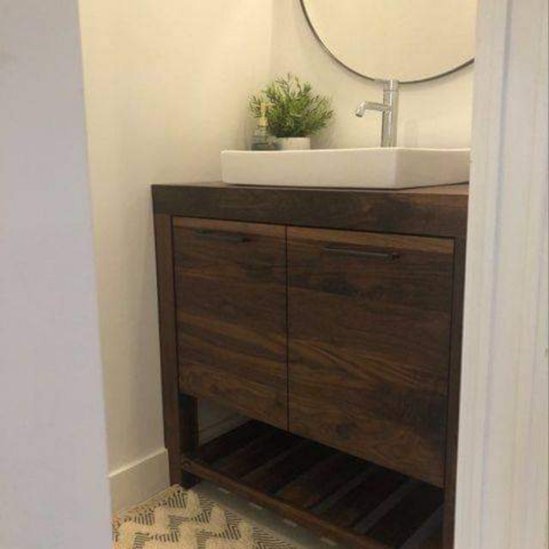 (La photo montre la vanité en Noyer Massif fini naturel)